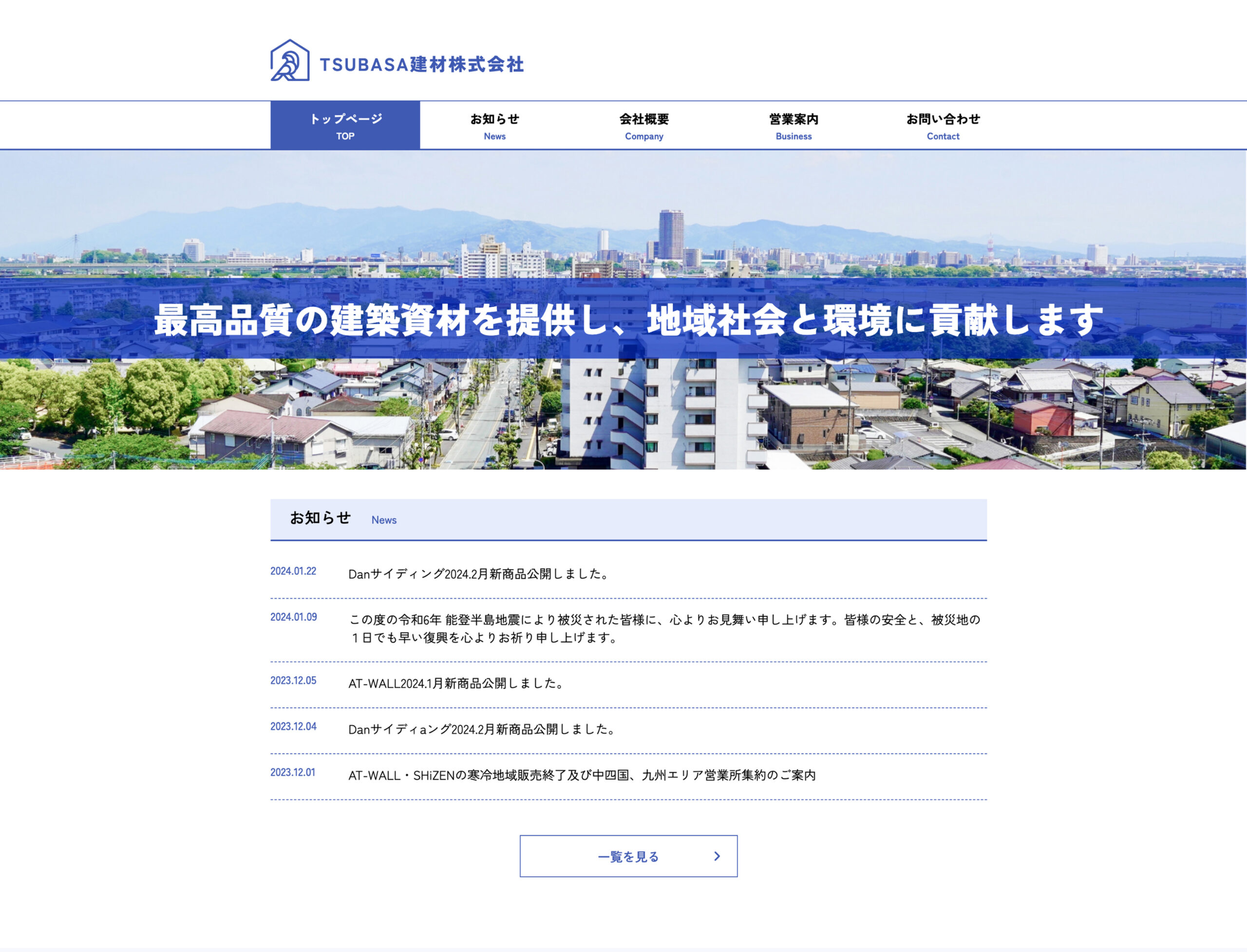 架空の建材会社のWebサイトをコーディングしました。